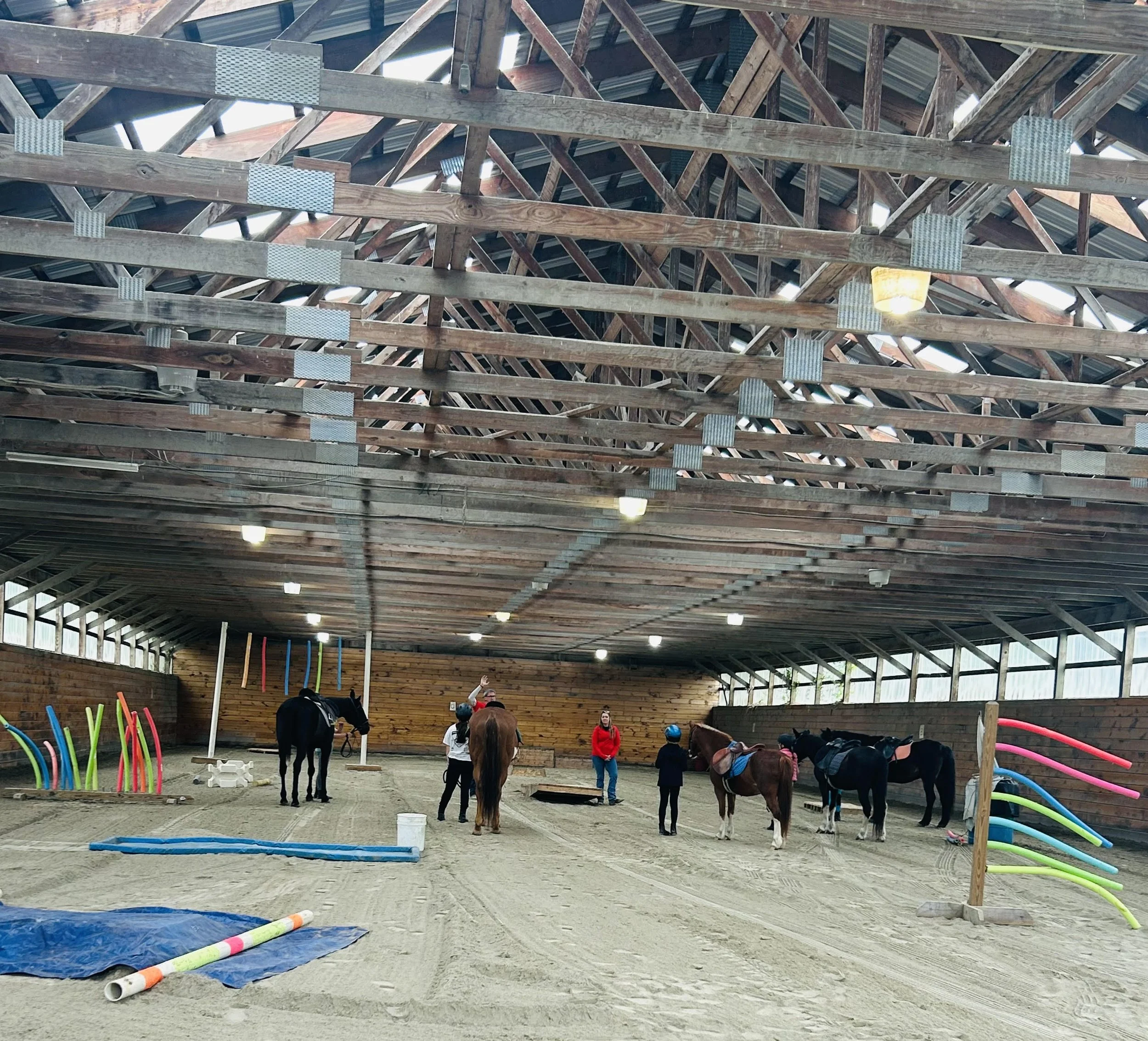 Clinic uses obstacles to build trust, teamwork, and increase communication skills. Obstacles vary from your typical bridge pokes and curtains to see saw bridges, platforms, flares, and more extreme things. We can really cater to the person and horses ability all within the same clinic. It is meant to push horse and rider out of their comfort zone and build trust.